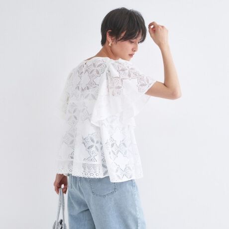 ・大柄のコットン混レースを使用した、カジュアルに合わせられる素材感のブラウスです。