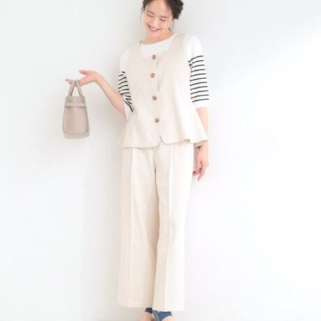 ナチュラルな風合いの素材を使ったベスト×パンツの2点セット。