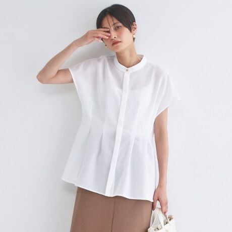 リネンライク タックフレンチスリーブブラウス【洗濯機OK/接触冷感/吸水速乾】