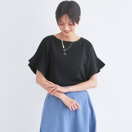 ・同素材のさりげないフリルで甘すぎず、きれいめにもカジュアルにも着られる一枚です。