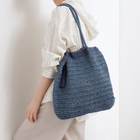 ペーパーとレーヨン糸をミックスして編み上げた、涼しげな雰囲気が魅力のトートバッグ。