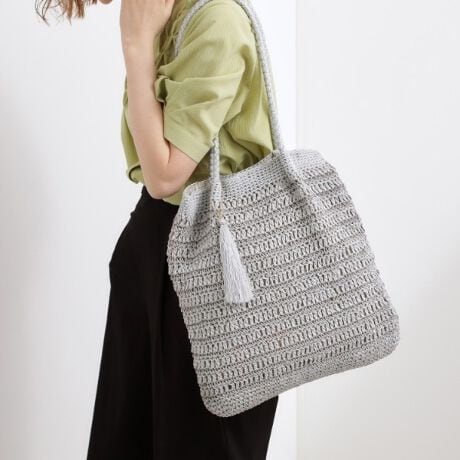 ペーパーとレーヨン糸をミックスして編み上げた、涼しげな雰囲気が魅力のトートバッグ。