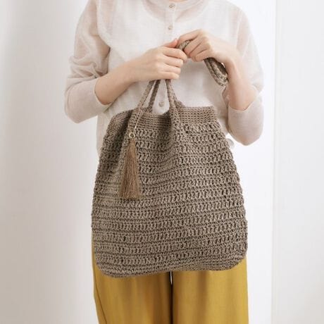 ペーパーとレーヨン糸をミックスして編み上げた、涼しげな雰囲気が魅力のトートバッグ。