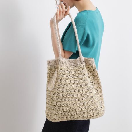 ペーパーとレーヨン糸をミックスして編み上げた、涼しげな雰囲気が魅力のトートバッグ。