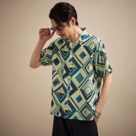 今シーズンを象徴する柄としてリゾート地であるマラケシュのタイル柄をイメージしたカジュアルなプリント柄のシャツです。