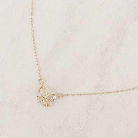 [型番:76985057]春らしいバタフライモチーフのプチペンダント。【デザイン】コンパクトなバタフライモチーフに上品なプチフェイクパールを添えたプチペンダント。首元から春を感じていただけるデザインです。※照明の関係により、実際よりも色味が違って見える場合があります。また、パソコン・スマートフォンなどの環境により、若干製品と画像のカラーが異なる場合もございます。