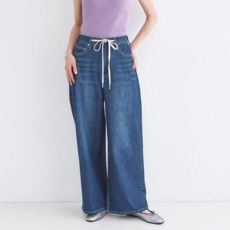・ウエスト紐がポイントになった、トレンド感のあるイージーワイドデニムです。