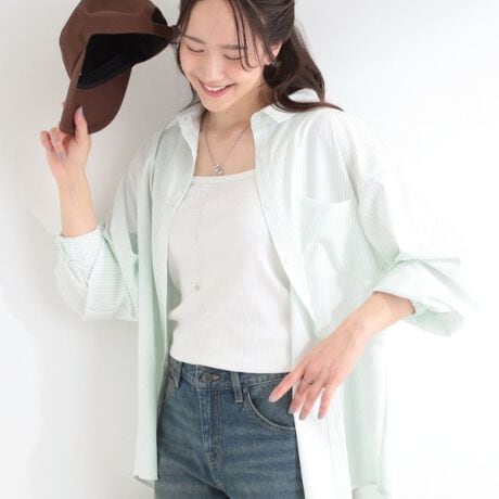細目のストライプで清涼感があり、すっきりとした印象で着回しやすい一枚です。