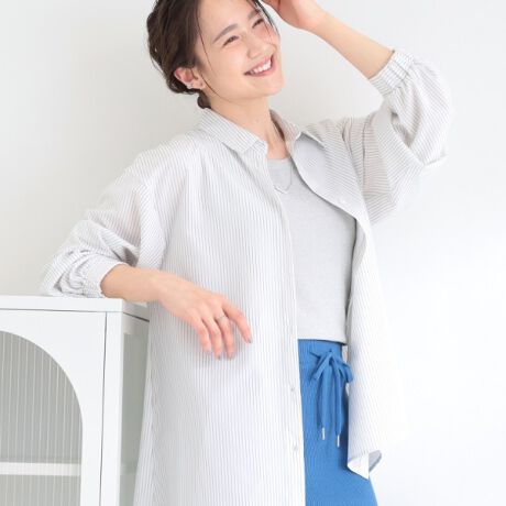 細目のストライプで清涼感があり、すっきりとした印象で着回しやすい一枚です。