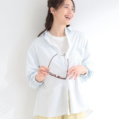 細目のストライプで清涼感があり、すっきりとした印象で着回しやすい一枚です。