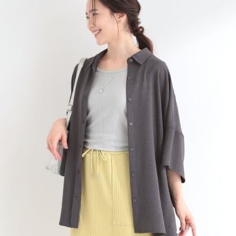 落ち感のある素材がきれいな、ゆったりシルエットの半袖シャツ。