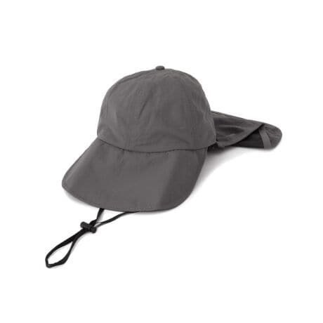 深めのブリムと取り外し可能なネックカバーを備えたワイドキャップ。