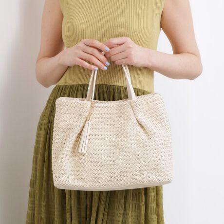 編み素材が涼しげな印象のトートバッグ。