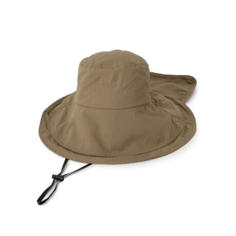 ツバ広のシルエットと取り外し可能なネックカバーで顔まわりから首筋までしっかりガードするハット。