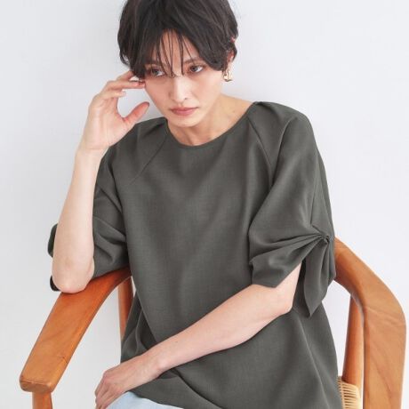 ・肩と袖にふんわりとしたタックデザインを施し、二の腕をさりげなくカバー可能。