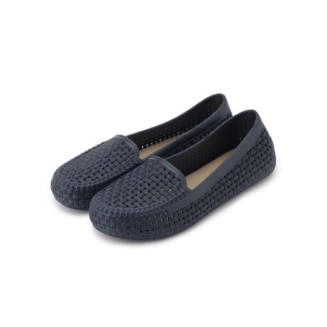 繊細なラインで編まれたメッシュデザインが目を引くPVC素材のモカシンタイプ。
