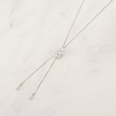 華やかなビジューが光を受けてキラキラと輝くスライドネックレス。