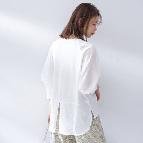 コンパクト天竺を使用し、表面がなめらかで上品な印象のラグランプルオーバーです。