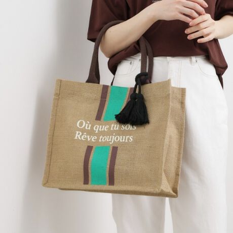 ジュートのナチュラル素材が雰囲気のあるA4サイズもすっぽり入るトートバッグです。