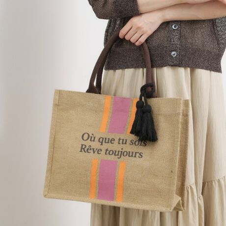 ジュートのナチュラル素材が雰囲気のあるA4サイズもすっぽり入るトートバッグです。