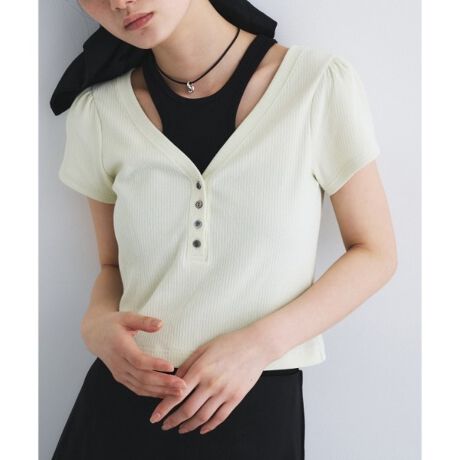 #リブTシャツ #ヘンリーネック #パフスリーブ #コンパクトトップス #大人カジュアル