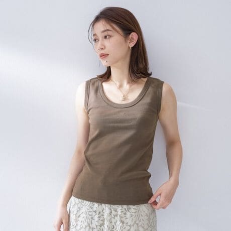 伸縮性のあるベーシックフライスを使用し、身体のラインを拾いすぎない程よいフィット感に仕上げたタンクトップです。