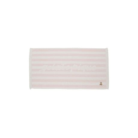 サングラス焼けしたお顔に思わず胸きゅん。夏をめいっぱい楽しむベアをテーマにした、SUMMER BEARの小物シリーズです。ワンポイントで日焼けベアの刺繍を添えた、夏らしい爽やかな色合いのボーダー柄ビーチタオル。プールサイドやビーチでさっと広げてひと休みしたり、濡れた体にさっと掛けたり、色々な用途に使えるサイズ感がポイントです。コットン100%のソフトな肌触りをお楽しみください。色はピンクとミントの2色展開。同シリーズのルームウェアや雑貨と組み合わせて、ギフトにもおすすめです。