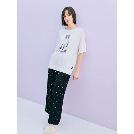 <b>【Joël Robuchon・ドット×ロゴ柄のシックなサテンロングパンツ】</b>