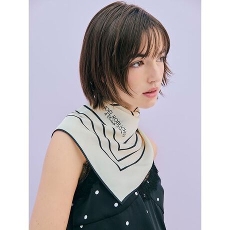 フレンチの巨匠が追求した、美食の哲学を体現するブランド「ジョエル・ロブション」と、gelato piqueが織りなすやさしい夏のひととき。シワになりにくいサテン素材を使用した、さらっとスムースな肌触りのプリントスカーフです。ラインとロゴプリントが入った、柔らかなオフホワイトが夏の装いにもぴったり。首元に巻いたりヘアアレンジにプラスしたり、バッグなどにも結べるサイズ感で、幅広いシーンでご使用いただけます。同シリーズのルームウェアを組み合わせてギフトにもおすすめです。