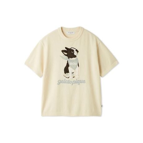 お散歩の時間が待ち遠しくて仕方ない。オーナー様を見上げるボストンテリアの子犬をジャガードで表現した、’エアモコ’素材の軽やかなニットプルオーバーです。バンダナを巻き、スニーカーをはいてスタンバイしている子犬の愛くるしい姿にほっこりする1枚。色は涼しげなブルーとダークグレー、ONLINE限定カラーのクリームを合わせた全3色をご用意しました。同シリーズのハーフパンツをコーディネートするのがおすすめです。