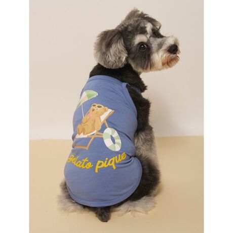 サングラス焼けしたお顔に思わず胸きゅん。夏をめいっぱい楽しむベアをテーマにした、オーナー様とお揃いでコーディネート可能なSUMMER BEARシリーズです。プールサイドでのんびりアイスを食べるベアを背中にプリントした、柔らかい接触冷感のベア天竺プルオーバー。スイムウェア風の涼しげなシルエットと背中のぷっくりとした発泡ロゴプリントがポイントです。背面に保冷剤を入れられる小さなポケットも付いているので、暑い時期のお出かけにもおすすめです。色はアイボリーとピンク、ネイビーの3色展開。同シリーズの雑貨を合わせたり、オーナー様のルームウェアとリンク・コーディネートもお楽しみいただけます。