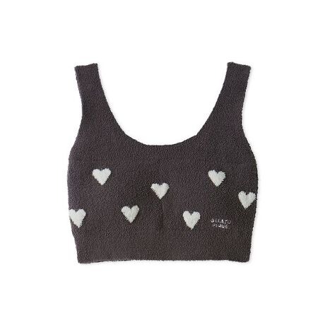 モコモコとした風合いの心地良いニット素材に、ハート柄のジャガードをデザインしたONLINE限定のシリーズです。大人の可愛さを意識したハート柄に、ワンポイントでロゴを添えたナイトブラ。バストを支えてデコルテをすっきりときれいに見せつつ、締め付け感を抑えたストレスフリーな着用感をお楽しみいただけます。色はオフホワイトとピンク、グレーの3色展開。同シリーズのウエストウォーマーパンツや着圧ソックスと組み合わせたり、ギフトにもおすすめのアイテムです。