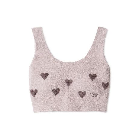 モコモコとした風合いの心地良いニット素材に、ハート柄のジャガードをデザインしたONLINE限定のシリーズです。大人の可愛さを意識したハート柄に、ワンポイントでロゴを添えたナイトブラ。バストを支えてデコルテをすっきりときれいに見せつつ、締め付け感を抑えたストレスフリーな着用感をお楽しみいただけます。色はオフホワイトとピンク、グレーの3色展開。同シリーズのウエストウォーマーパンツや着圧ソックスと組み合わせたり、ギフトにもおすすめのアイテムです。