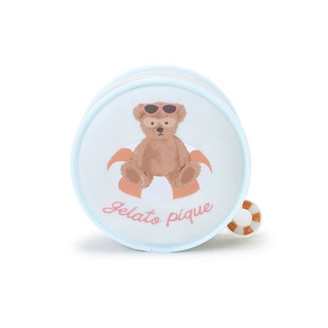 サングラス焼けしたお顔に思わず胸きゅん。夏をめいっぱい楽しむベアをテーマにした、SUMMER BEARの小物シリーズです。クリアな半透明素材と、カラフルな浮き輪の形をしたファスナーの引き手がキュートな丸型のビニールポーチ。イヤホンケースやミントタブレットなどを入れたり、海水浴や旅行などレジャーシーンでの小物入れにもおすすめです。色はアイボリーとピンク、ブルーの3色展開。同シリーズのルームウェアや雑貨とコーディネートしてお楽しみください。