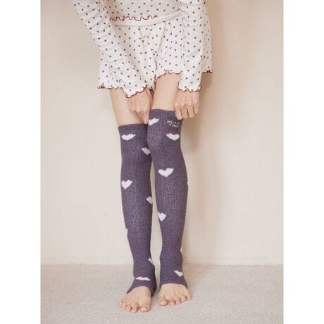 モコモコとした風合いの心地良いニット素材に、ハート柄のジャガードをデザインしたONLINE限定のシリーズです。大人の可愛さを意識したハート柄に、ワンポイントでロゴ刺繍を添えた着圧ソックス。つま先を開けたストレスフリーな着用感と程良い着圧感で、疲れがたまった足元をすっきりとサポートします。色はオフホワイトとピンク、グレーの3色をご用意しました。同シリーズのウエストウォーマーパンツやナイトブラと組み合わせたり、ギフトにもおすすめのアイテムです。