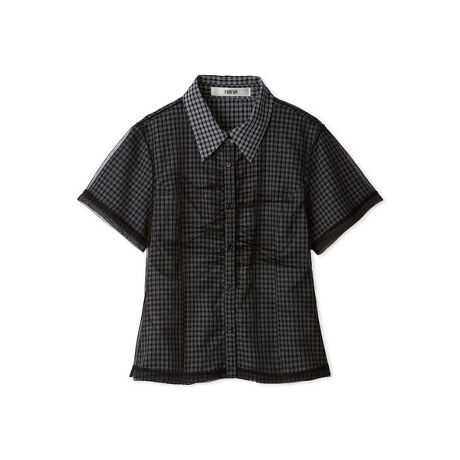 チュールをレイヤードしたデザインが特徴のコンパクトなシャツです。ウエストにタックを施し、メリハリのあるシルエットに仕上げました。透け感のあるチュールが、さりげない華やかさとフェミニンな印象を演出します。一枚で着映えし、きれいめからカジュアルまで幅広いスタイリングに活躍するアイテムです。