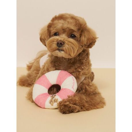 サングラス焼けしたお顔に思わず胸きゅん。夏をめいっぱい楽しむベアをテーマにした、オーナー様とお揃いでコーディネート可能なSUMMER BEARシリーズです。プールサイドでのんびりアイスを食べるベアをワンポイントで刺繍した、浮き輪モチーフのトイ。ふんわり起毛した優しい素材感で、ロゴ刺繍も入ったキャッチーなアイテムです。小型犬や猫の小さな枕や、クッション代わりにもなる可愛いサイズ感。同シリーズの雑貨を合わせたり、オーナー様のルームウェアとリンク・コーディネートもお楽しみいただけます。