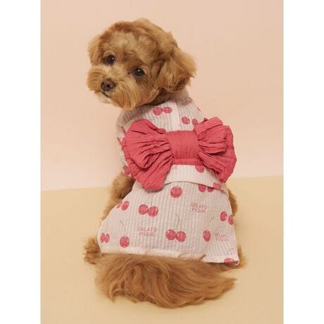 昨年の夏も大好評をいただいたCAT&DOG用浴衣シリーズが、より使いやすくアップデートして新登場です。夏の楽しいイベントシーンに映える、カラフルなプリント柄が4種類。今回の新作では、ハーネスを付けた上から浴衣を着用できるよう、首元にリードを通せる開口部を設けました。お腹周りはギャザー仕様で、動きやすくなっています。色はチェリー柄のピンク、アイス柄のイエロー、ダイナソー柄のライム、イルカ柄のブルーの4種類。きょうだいで色違いコーディネートもおすすめです。