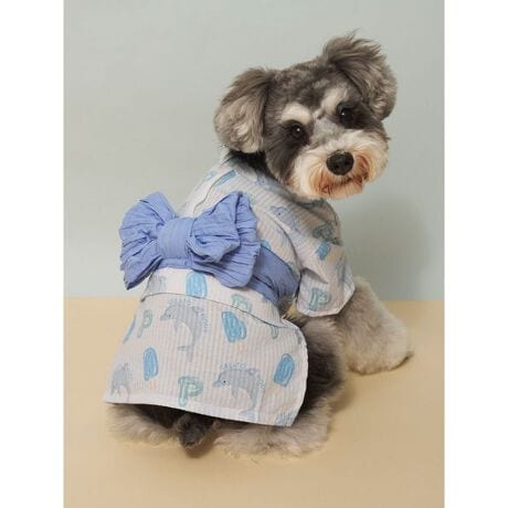 昨年の夏も大好評をいただいたCAT&DOG用浴衣シリーズが、より使いやすくアップデートして新登場です。夏の楽しいイベントシーンに映える、カラフルなプリント柄が4種類。今回の新作では、ハーネスを付けた上から浴衣を着用できるよう、首元にリードを通せる開口部を設けました。お腹周りはギャザー仕様で、動きやすくなっています。色はチェリー柄のピンク、アイス柄のイエロー、ダイナソー柄のライム、イルカ柄のブルーの4種類。きょうだいで色違いコーディネートもおすすめです。