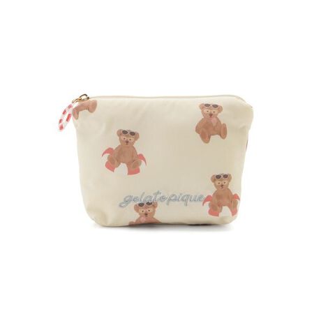 サングラス焼けしたお顔に思わず胸きゅん。夏をめいっぱい楽しむベアをテーマにした、SUMMER BEARの小物シリーズです。浮き輪でひと休みしたり、アイスを食べたり、プールサイドでのんびり過ごすベアを総柄プリントした台形のティッシュポーチ。リップやパウダーなど最低限のコスメが入るコンパクトなポーチで、背面にティッシュケースを付けました。カラフルな浮き輪の形をしたファスナーの引き手と、ワンポイントのロゴ刺繍もポイントです。色はアイボリーとピンク、ミントの3色展開。同シリーズのルームウェアや雑貨とコーディネートしてお楽しみください。
