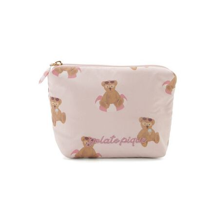 サングラス焼けしたお顔に思わず胸きゅん。夏をめいっぱい楽しむベアをテーマにした、SUMMER BEARの小物シリーズです。浮き輪でひと休みしたり、アイスを食べたり、プールサイドでのんびり過ごすベアを総柄プリントした台形のティッシュポーチ。リップやパウダーなど最低限のコスメが入るコンパクトなポーチで、背面にティッシュケースを付けました。カラフルな浮き輪の形をしたファスナーの引き手と、ワンポイントのロゴ刺繍もポイントです。色はアイボリーとピンク、ミントの3色展開。同シリーズのルームウェアや雑貨とコーディネートしてお楽しみください。