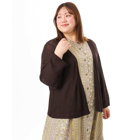 前開きのトッパータイプでさっと羽織れるため、ブラウスやカットソーはもちろん、ワンピースとのコーディネートにも最適。