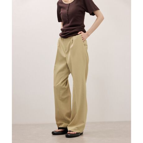 スッキリとした1タックの腰周りで、細身な筒と裾に向かって程よいフレアーシルエット。