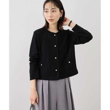 ・ゴールドボタンがアクセントの、端正なジャケット見えルックス。