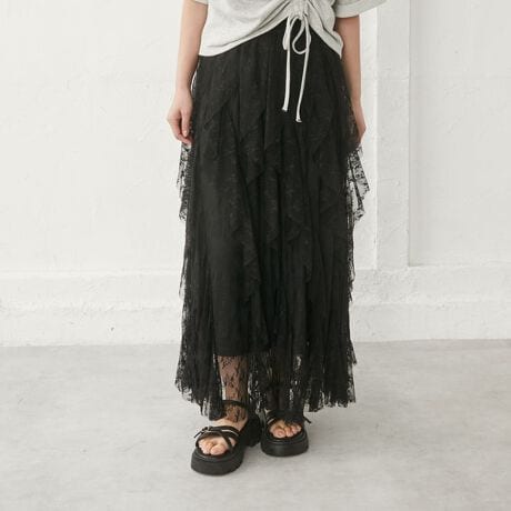 ■動くたびに華やぐ、レースエスカルゴラッフルスカート■