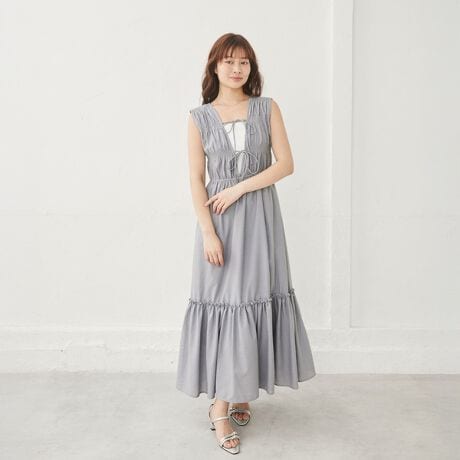 2wayリボンシャーリングノースリワンピース