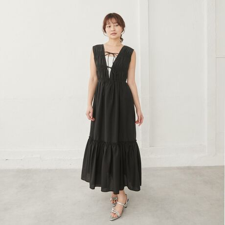 ■シャーリング使いが目を惹くノースリーブワンピース■