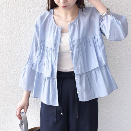 華やかなティアードデザインが目を惹き、簡単に着映えが叶うシャツ。