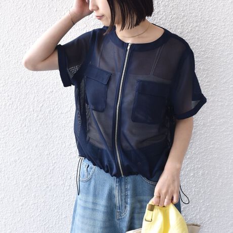 目の細かなメッシュ素材なので、透け過ぎずデイリーに取り入れやすい一枚。
