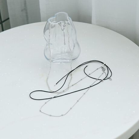 →ビーズ:クリアシルバー / チェーン:シルバー / チョーカー:ブラック(モチーフ・スライダー部分シルバー)